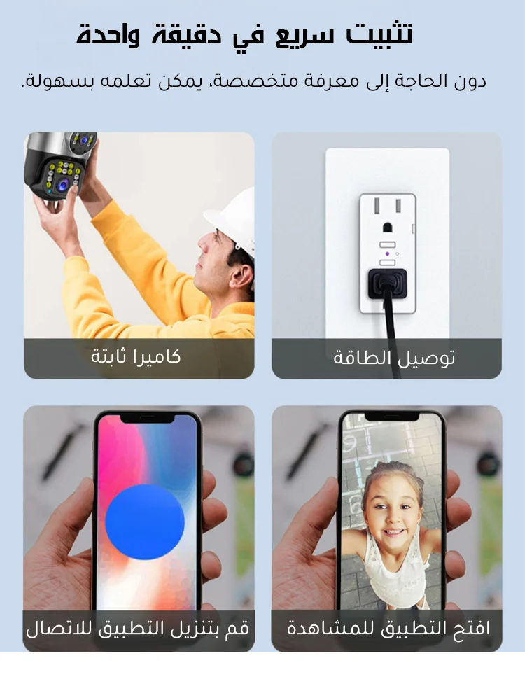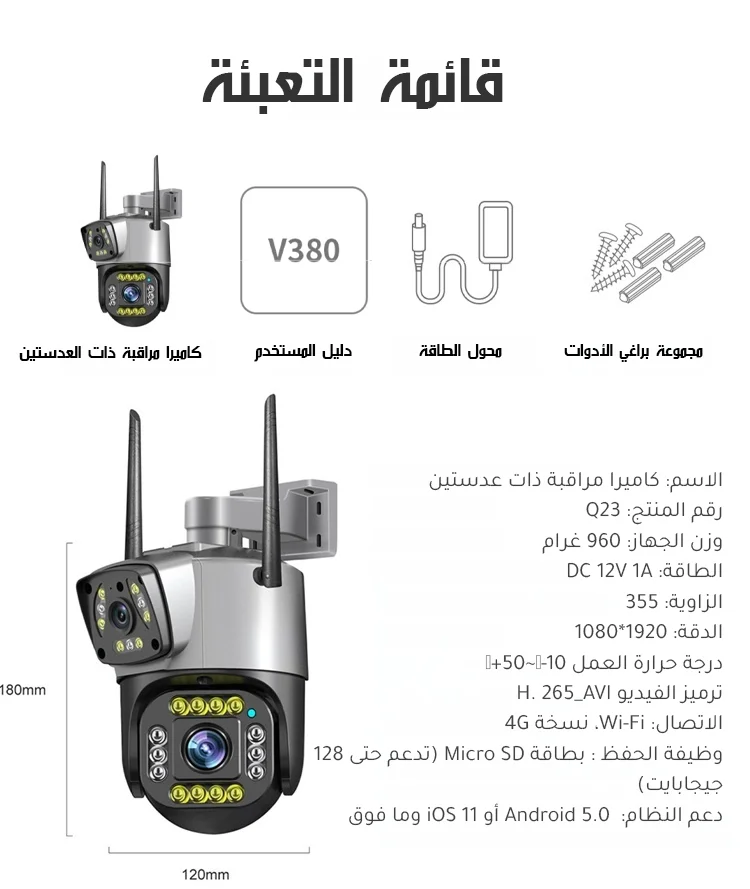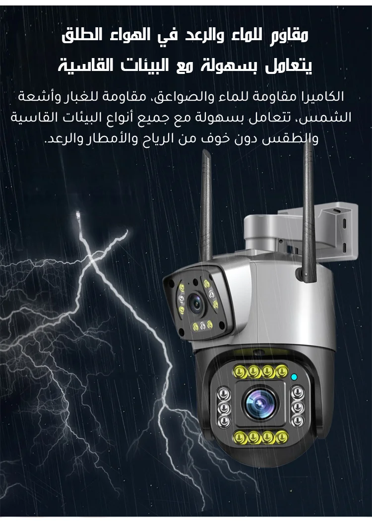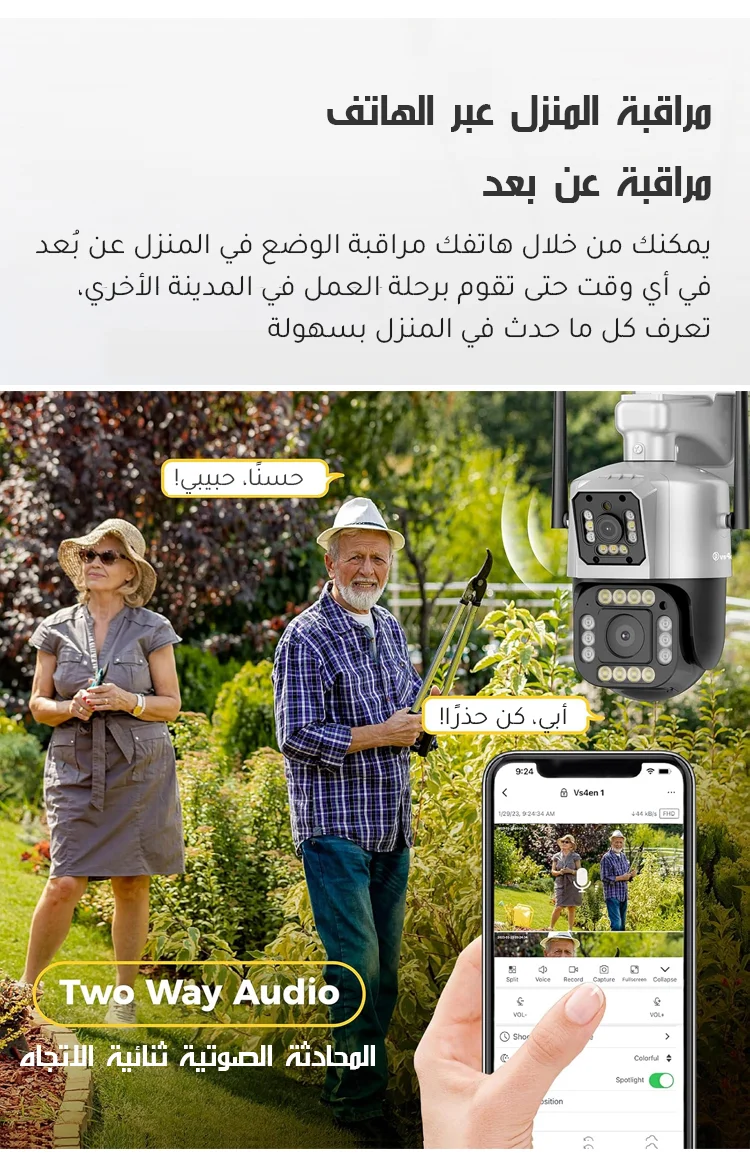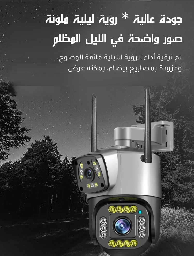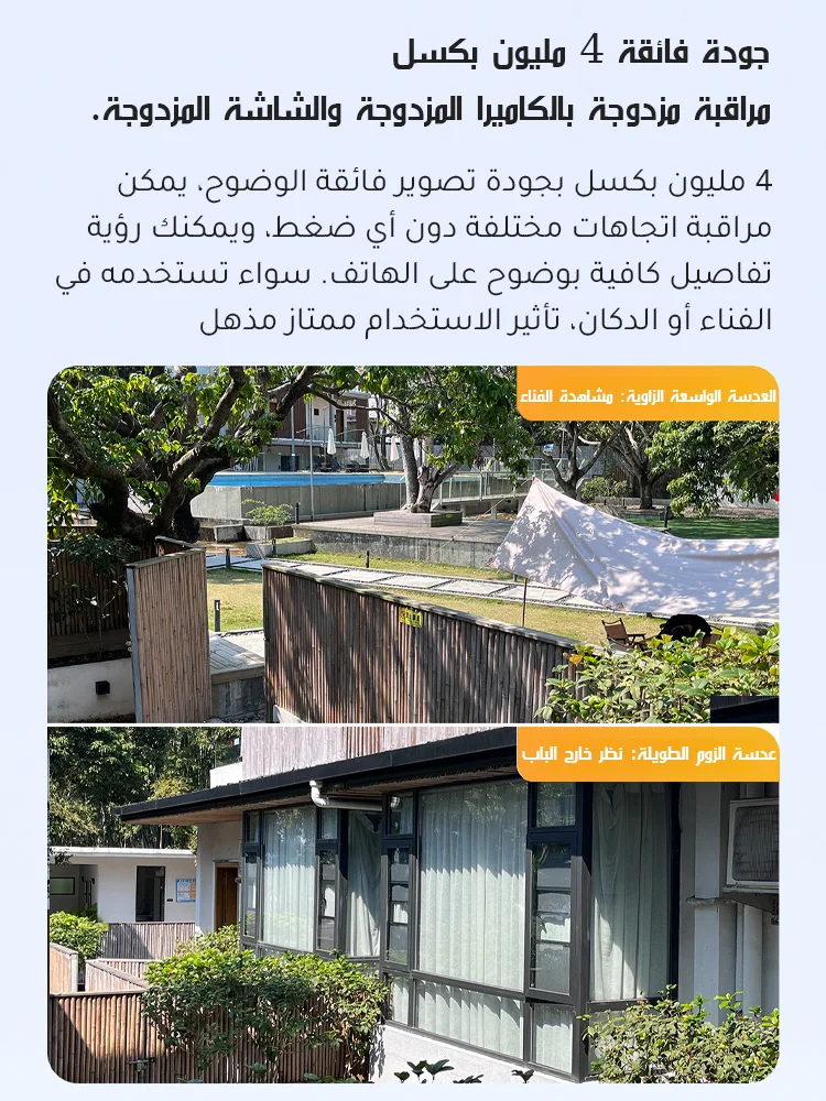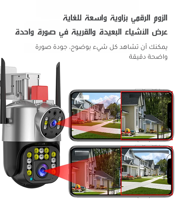 كاميرا مراقبة ذات عدستين وإنذار تلقائي تعمل بالطاقة الشمسية